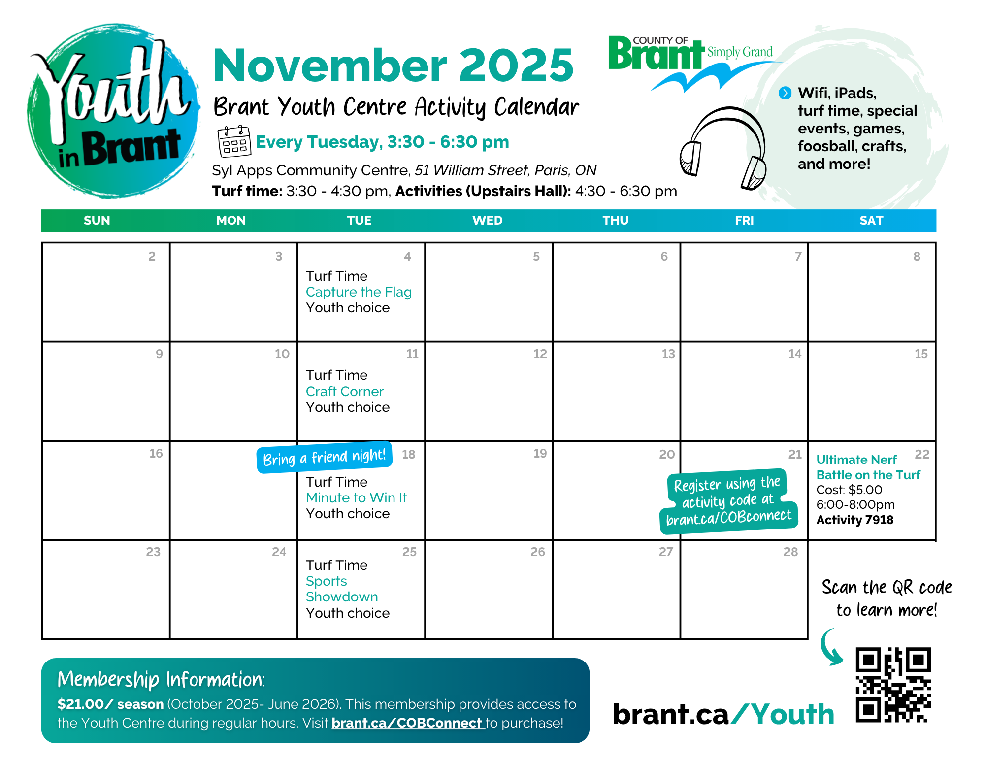 Brant Youth Centre will return on Tuesday, October 14th!