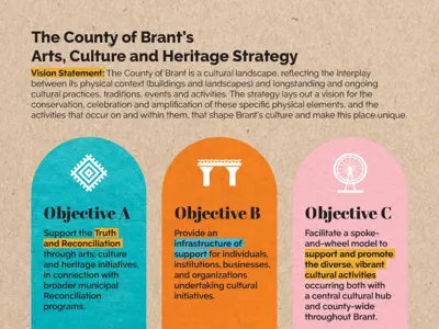 The Arts, Culture and Heritage Strategy serves as a practical and actionable guide, helping us navigate the challenges and seize the opportunities ahead. Together, we can build a culturally enriched future for the County of Brant, one that honours our past, supports our present, and inspires our future.